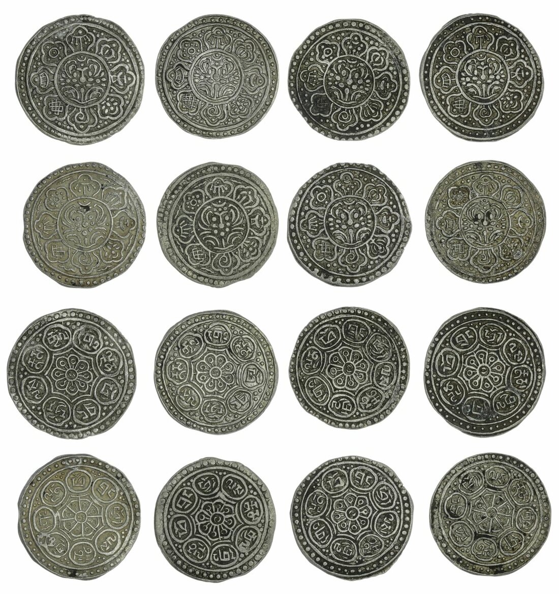 Tibetan Government, Anonymous (c. 1896-99), Gaden Tangkas, type D (8), undated, three beads in margins both sides (Rhodes Di, Dii, Diii, Div; KM. D 13.1, 13.2, 13.3, 13.4, 13.5), about very fine or better (8)