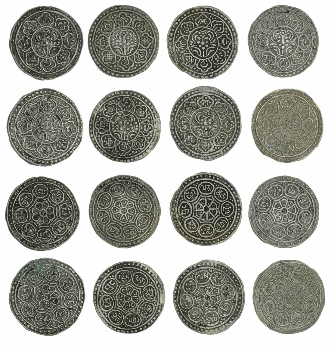 Tibetan Government, Anonymous (c. 1896-99), Gaden Tangkas, type D (8), undated, three beads in margins both sides (Rhodes Di, Dii, Diii, Div; KM. D 13.1, 13.2, 13.3, 13.4, 13.5), about very fine or better (8)