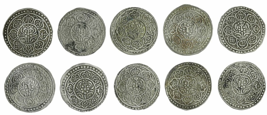 Tibetan Government, Anonymous (c. 1899-1907), Gaden Tangkas, type E (10), Dod-pal mint, undated (Rhodes Ei (2), Eii, Eiii (2), Eiv (2), Evi (2), Evii; KM. E 13 type), generally very fine or a little better, the last a scarce variant (10)
