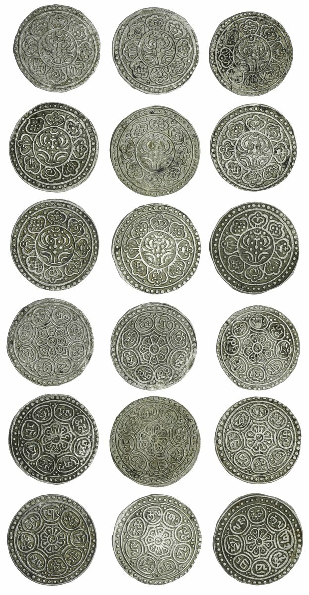 Tibetan Government, Anonymous (c. 1907-12), Gaden Tangkas, type F (9), Dode mint, undated (Rhodes Fi (2), Fii (2), Fiii (2), Fiv (2), Fvi; KM. F 13.1), generally very fine, the last a little corroded, but scarce (9)