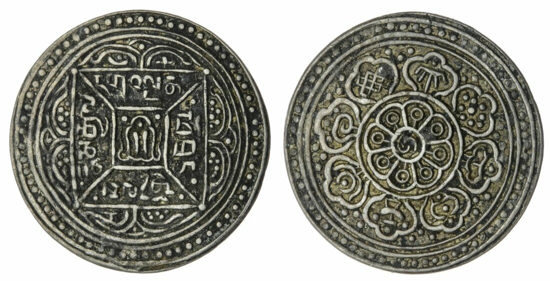 Tibetan Government, Anonymous (1910), Kelsang (Monk) Tangka, 3.12g, undated, obv. bead type: 0/2/2/1 (YZM 352 var; KM Y#14), some surface dirt, good very fine, scarce