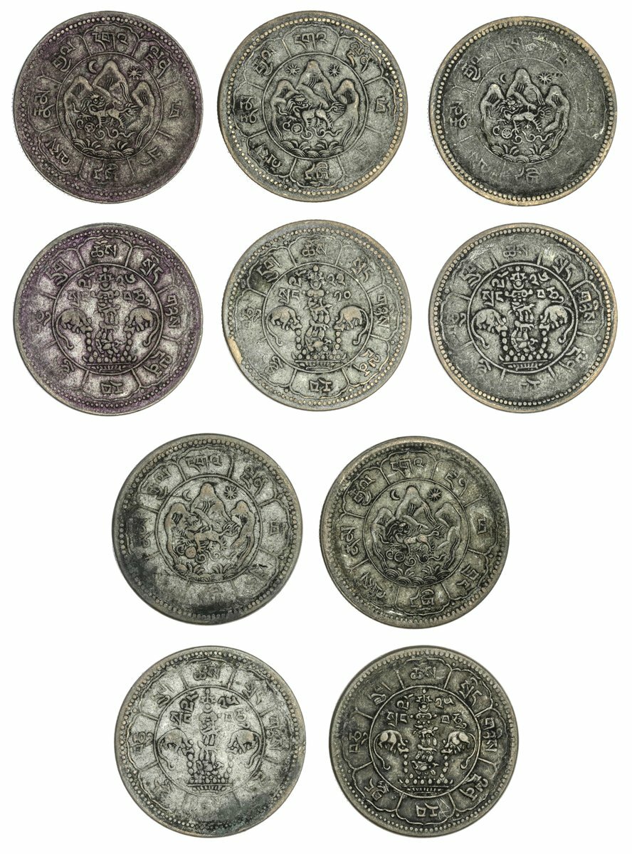 Tibetan Government, Anonymous, 10-Srang (5), Trabshi mint, T.E. 1622 (1), 16-25 (2), 16-26 (2) (YZM 516, 522, 524; KM. Y#29; LM 662-3), fine to good fine (5)
