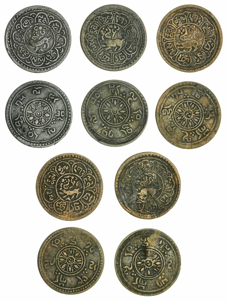 Tibetan Government, Anonymous, AE 5-Skar (5), Dode mint, lion looking backwards, T.E.15-48, 15-49, 15-50, 15-51, 15.52 (KM. Y#17.1), fine to very fine, scarce (5)