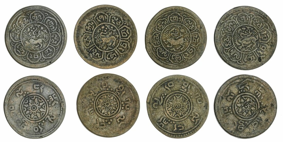 Tibetan Government, Anonymous, AE 5-Skar (4), Dode mint, lion looking up and backwards, T.E.15-48 all lions struck from different dies (KM. Y#17.2 var), fine to very fine, scarce (4)