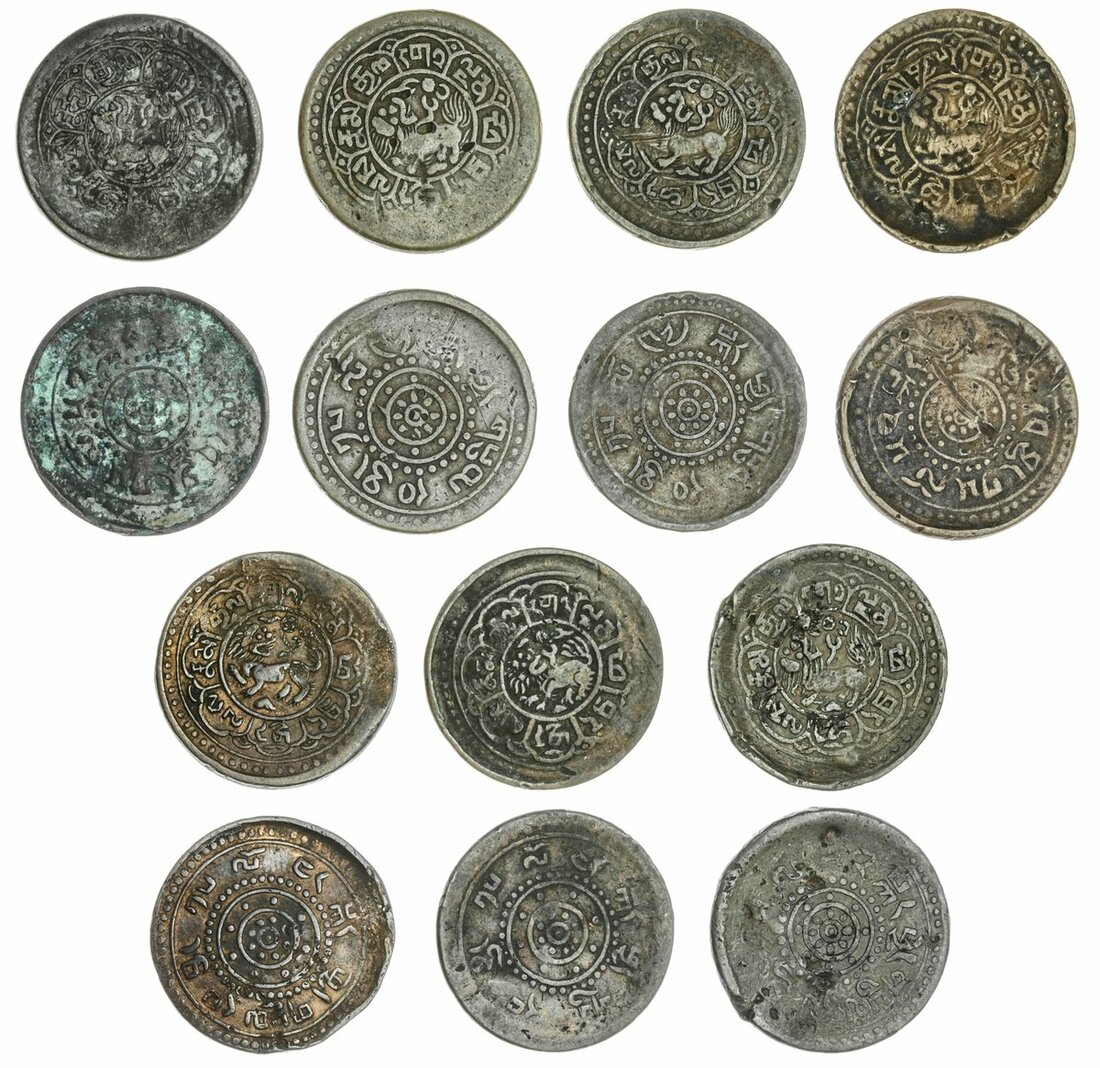 Tibetan Government, Anonymous, AE 2½-Skar (7), Dode mint, T.E.15-47 (2), 15-48 (2), 15-52 (3) (KM. Y#16.1, 16.2), generally fine (7)