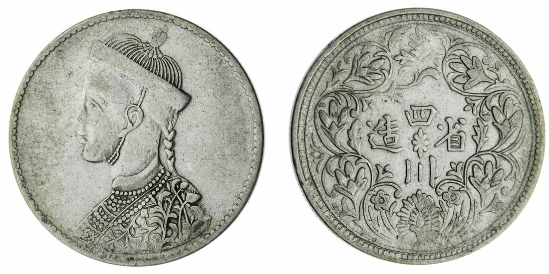 China, issued for Tibet (1912-16), Sichuan Rupee, 11.06g, undated, small head with collar, rev. vertical rosette, without leaf in north-east position (YZM 451-472; KM 3.2), fine