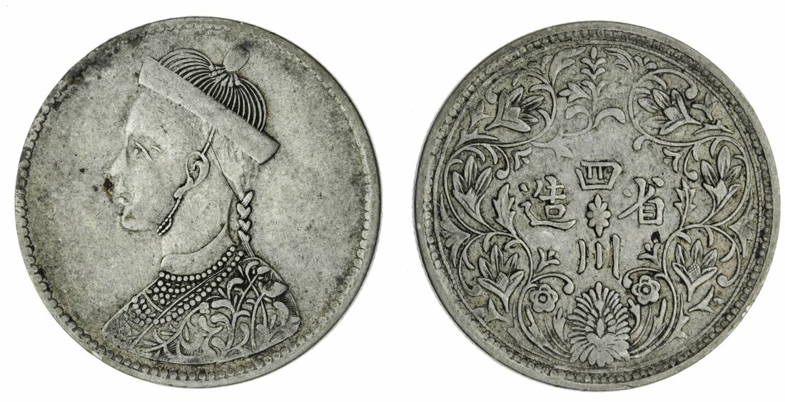 China, issued for Tibet, Sichuan Rupee, 11.22g, undated, small head with collar, rev. vertical rosette, with leaf in north-east position (YZM 451-472; KM 3.2), fine
