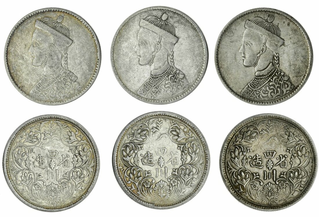 China, issued for Tibet, Sichuan Rupees (3), undated, small head with collar, rev. vertical rosette, without leaf in north-east position (YZM 451-472; KM 3.2), fine to very fine (3)