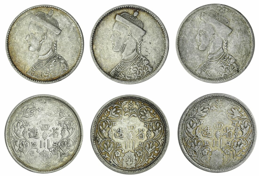 China, issued for Tibet, Sichuan Rupees (3), undated, small head with collar, rev. vertical rosette, without leaf in north-east position (YZM 451-472; KM 3.2), fine to good fine (3)
