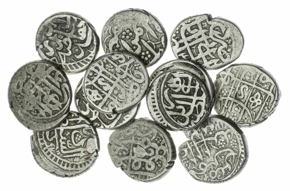 Afghanistan, Barakzai, Muhammad Yaqub (1879-80), Rupees, Kabul, AH1296 (2), Wali Sher 'Ali (1880), Rupee, Qandahar, AH1297, two leaves below obverse, temp.Wali Muhammad (at Kabul 1880), Rupees (3), Kabul, AH1297 where visible, Abdur Rahman (1880-1901), Rupees (6), Qandahar (3), Kabul (3) (KM 224, 533, 544.1), fine to good fine (12)