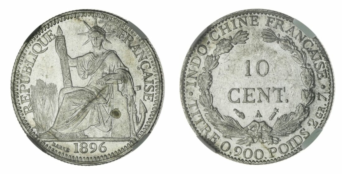 French Indo-China, 10-Cents, Paris, 1896A, Fasces type (KM 2a), graded by NGC MS60