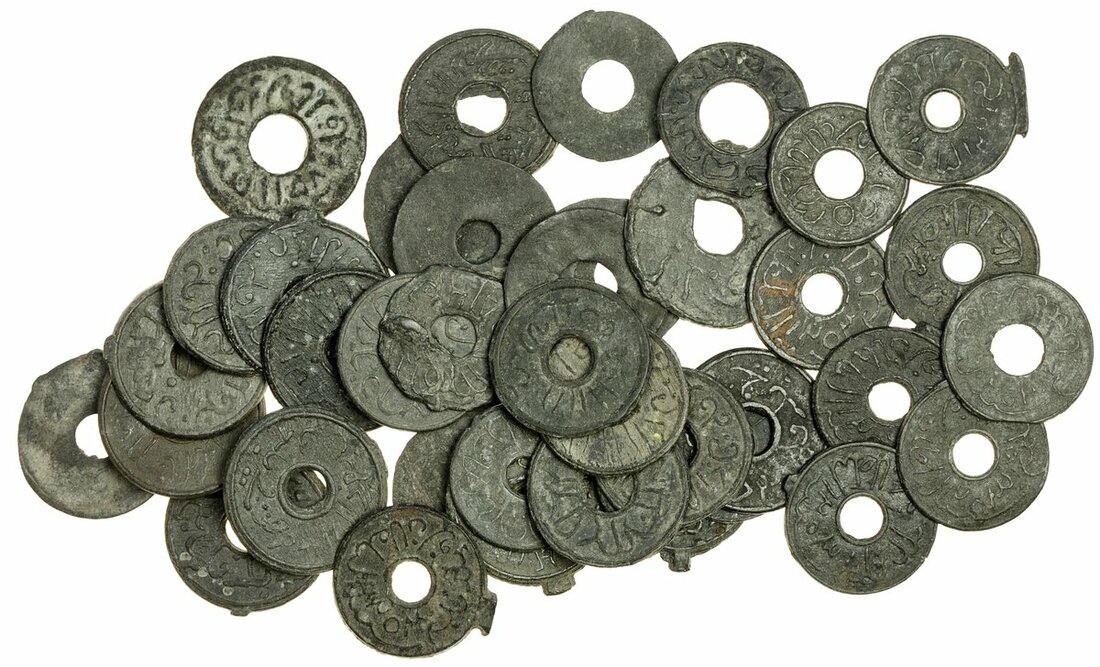 Indonesia, Sumatra, Palembang, Anonymous (c.1710-49 and possibly until 1778), cast tin Pitis with circular hole, generally undated (32), zarb fi beled palembang dar as-salam, together with a similar Pitis, legend unclear (Millies (1871), plate XIX, no.184; JONS 215, pp.33-36, type 1 varieties), little circulated, extremely fine for type, Sultan Muhammad Bahaudin (1776-1804), cast tin/copper alloy Falus, 1.88g, AH1198 (Millies (1871), plate XIX, no.188; Wicks (1983), plate 22, 233; JONS 215, p.39, type 5), very fine, scarce, Anonymous, cast tin Pitis, AH1202 (1), AH1203 (7), similar with corrupted legend (1) (Millies (1871), plate XIX, no.189); JONS 215, p.40, type 6), extremely fine for type (43)