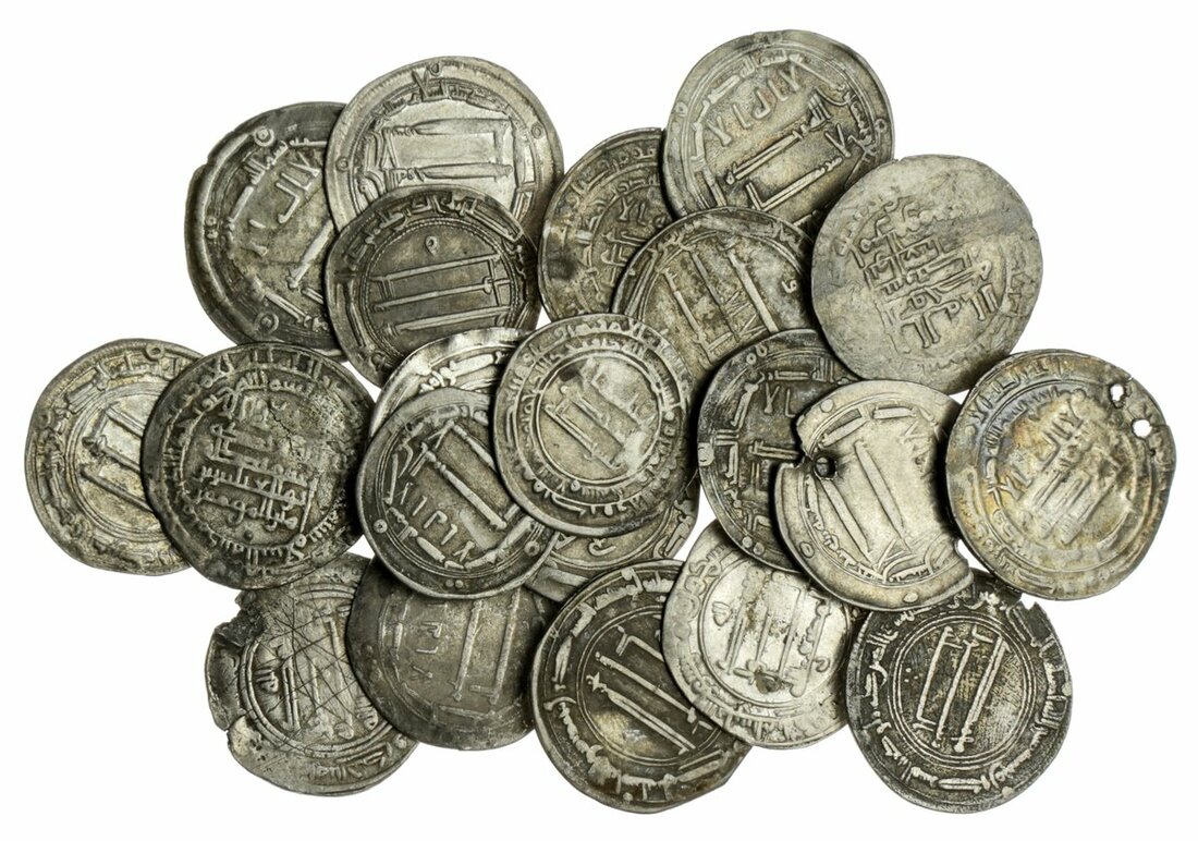 Abbasid, Dirhams (21), mainly issues of Kufa, Madinat al-Salam and Muhammadiya, with a couple of later issues of Merv and Balkh, have been stored in plastic envelopes, a couple holed, about fine to very fine (21)