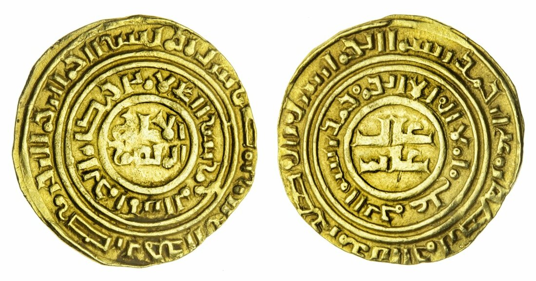 Crusader, Kingdom of Jerusalem (Second phase, struck 1148/59-1187), gold Bezant, 3.82g, copying a Dinar of the Fatimid caliph al-Amir, possibly Tyre mint, mint formula [Misr] fictitional date AH 5-- (Malloy 3; Metcalf 119/133, about very fine