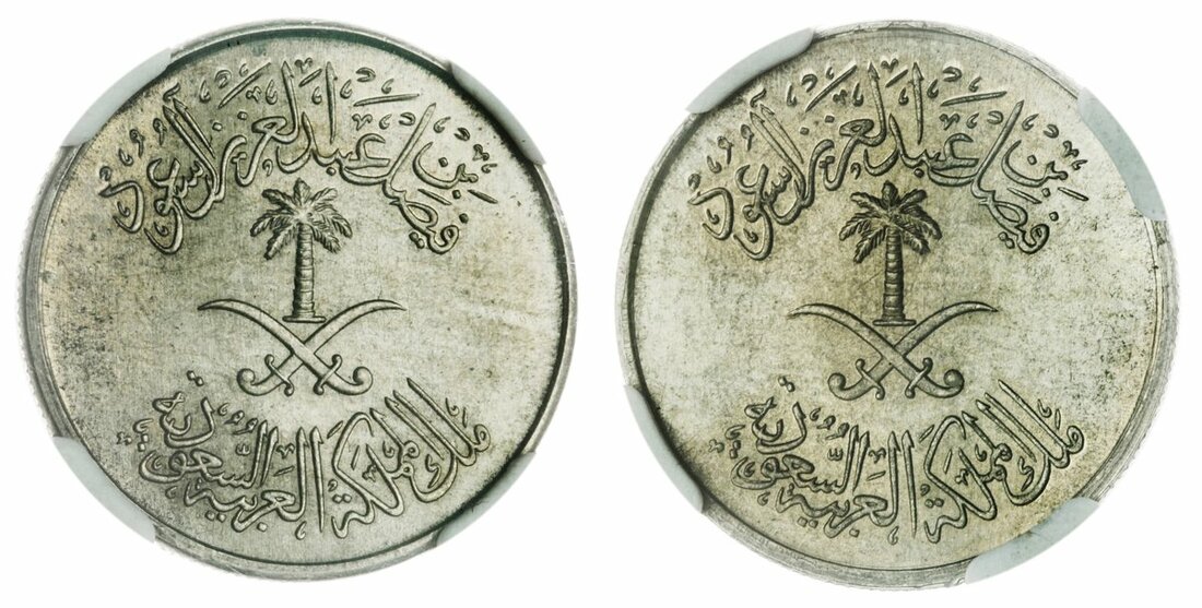 (x) Saudi Arabia, Reform Coinage,10-Halala, obverse brockage, 1972 (KM 46), graded by NGC MS 65, rare mint error