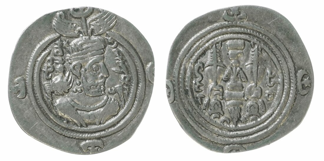 Sasanian Empire, Hormizd V (631-32), Drachm, NYHC (Nishapur), year 2, crowned bust facing right, rev. fire altar flanked by attendants (Göbl 231; Sell. 72), very fine