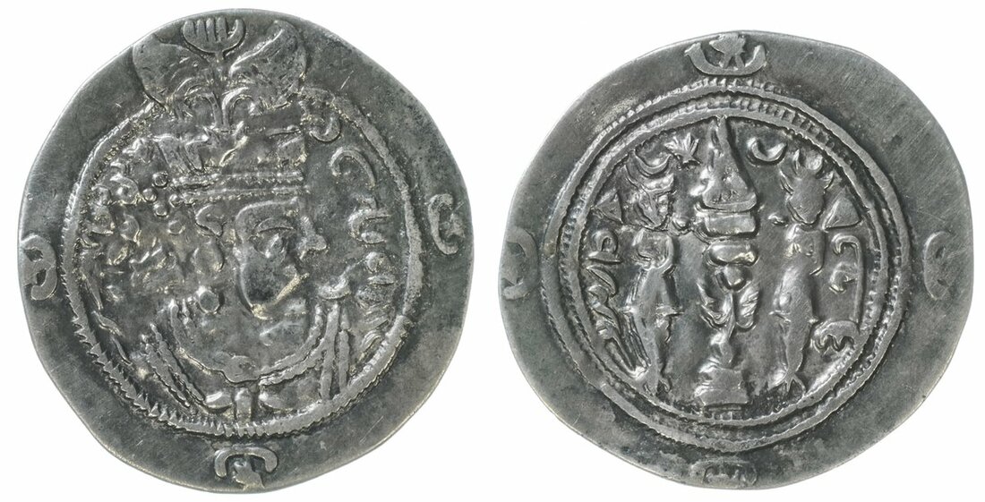Sasanian Empire, Yazdgard III (632-51), Drachm, SK, Sakastan, yr. 9, beardless bust facing right wearing crown with wings, rev. fire altar flanked by attendants (Göbl 234; Sell. 74), toned, very fine
