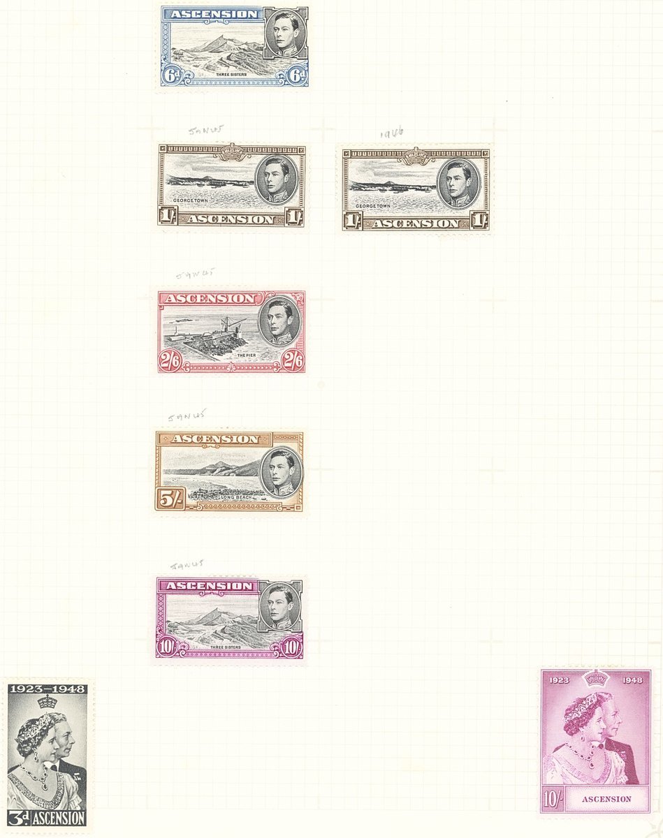 1934-49 mint selection on pages including 1934 set of ten to 5/-, 1935 Silver Jubilee, 1938-53 set of sixteen to 10/- with some duplication including 5/- (3) and 10/- (3), 1949 Silver Wedding etc. fine and lightly hinged to the pages. Cat. £900+