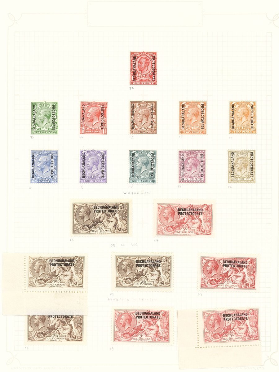 1912-25 small, mostly mint group hinged to pages including 1913-24 set, Waterlow 2/6d., 5/-, De La Rue 2/6d. pale brown from the lower left of the sheet and 2/6d. sepia, 5/- and Bradbury Wilkinson 2/6d. and 5/- (2), one from the lower left of the sheet, and 1925-27 set to 1/-. Cat. £1,200+