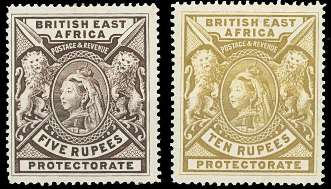 1897-1903 CC 5r. deep sepia and 10r. yellow-bistre, large part original gum. S.G. 96-97, £900