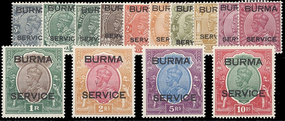 1937 3p. to 25r., with values up to 1r. in blocks of four, large part original gum, 25r. with tone spot on reverse of single perf., also singles to 12a, large part original gum few minor faults otherwise a attractive set. Also 1937 Service set to 10r.., large part original gum. S.G. 1-18, £3,500+