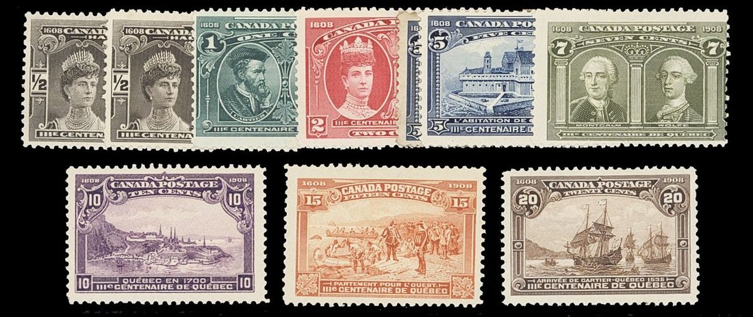 1908 Tercentenary ½c. to 20c., large part original gum, some light toning throughout. S.G. 188-195, £550