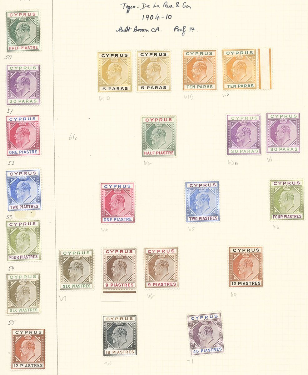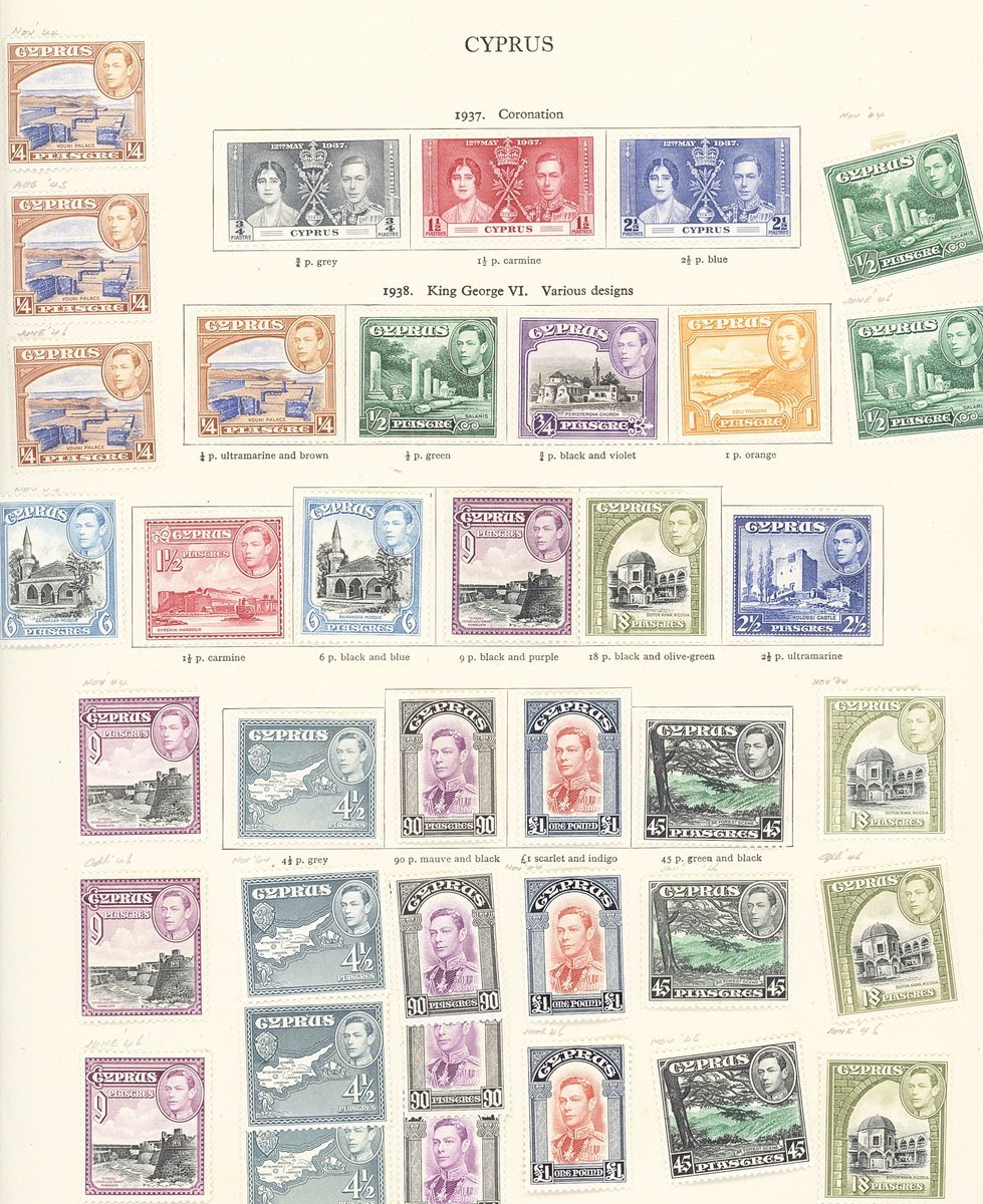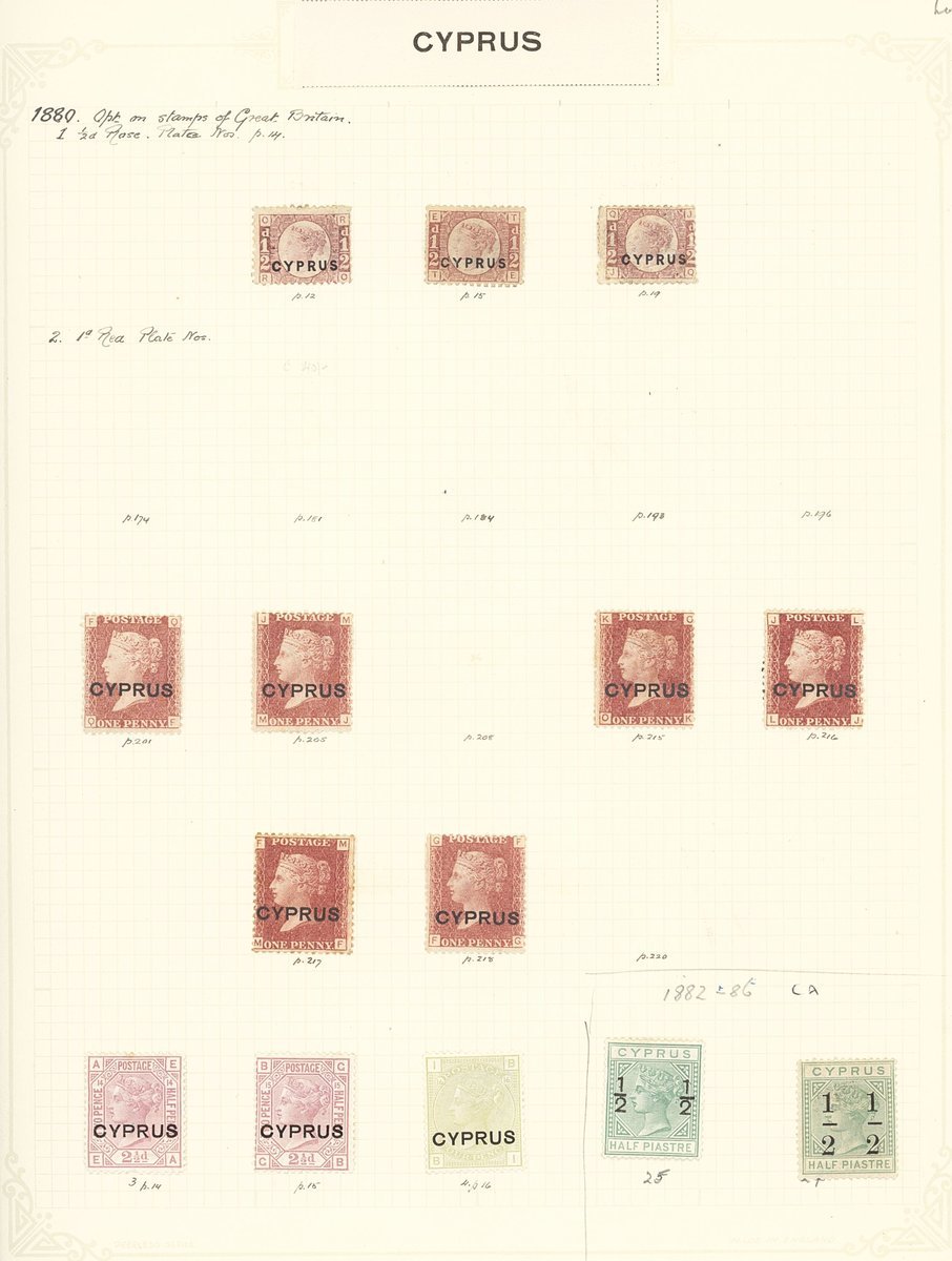 1880-1951 mint collection hinged to album pages including 1880 ½d. rose Pl. 12, 15 and 19 (faults), 1d. red (6), 4d. sage-green, 1881 ½d. surcharged Type 3 Pl. 174, 181, 201, 205 and 218, Type 4 Pl. 201 and 216 and Type 5 Pl. 215 and 217, 30p. on 1d. red Pl. 201, 1882 CA ½d. surcharges, 1902-04 to 12pi., 1904-10 MCA to 45pi., 1912-15 MCA to 45pi. and 1921 Script to 45pi., 1924-28 Script to 90pi., 1934 set to 45pi., 1938-51 set with duplication including 45pi. (3), 90pi. (4) and £1 (3), 1948 Silver Wedding etc. condition a little mixed on early issues, generally good to fine; huge Catalogue value