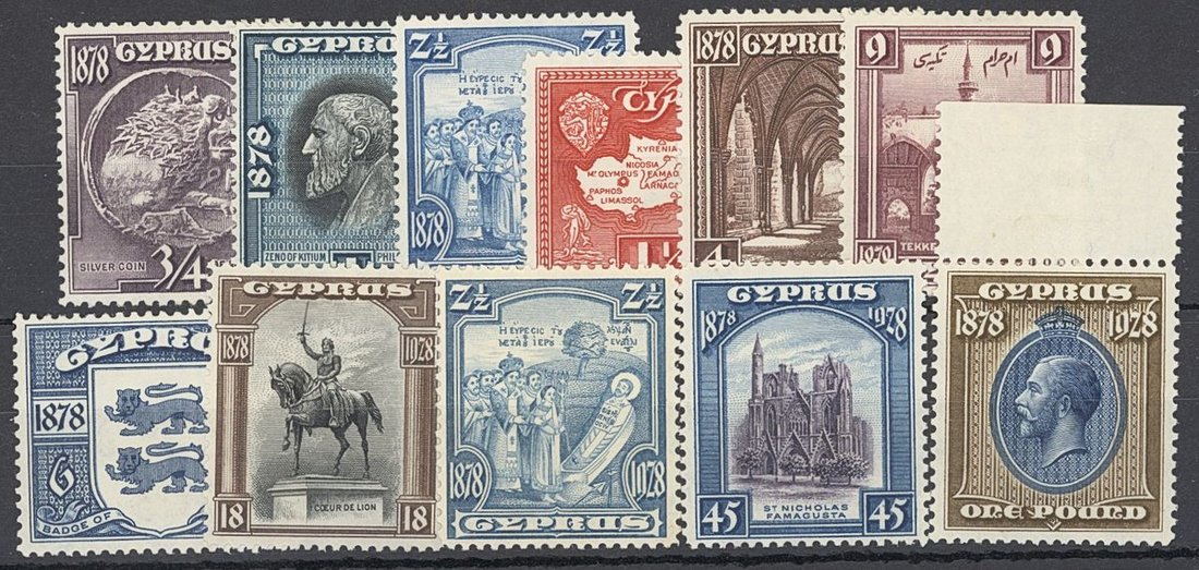1928 Anniversary ¾pi. to £1, large part original gum, £1 from the top of the sheet and mounted in the margin only. S.G. 123-132, £300