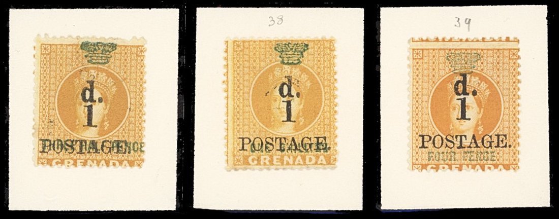 1886 Revenue 1d. on 1½d., 1d. on 1/- and 1d. on 4d. orange with isolated toning, large part original gum. S.G. 37-39, £280