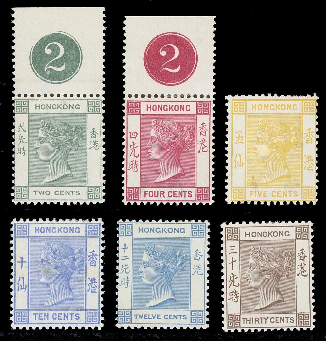 1900-01 2c. to 30c., part original gum, 2c. and 4c. from the top of the sheet showing plate number '2'. S.G. 56-61, £200
