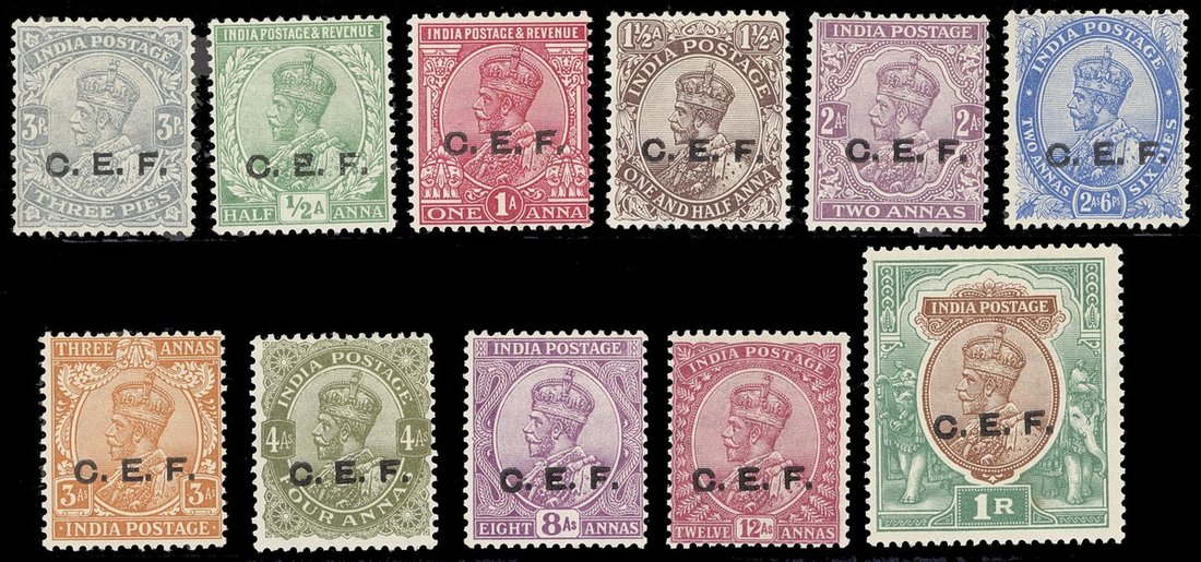 1914-22 3p. to 1r., toning throughout, 1r. with oil spot and light gum bend. S.G. C23-C34, £350