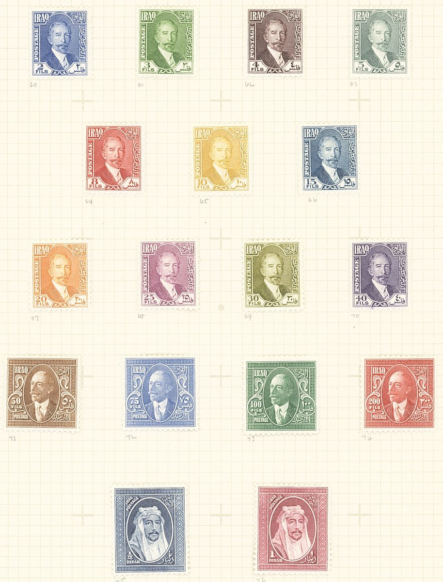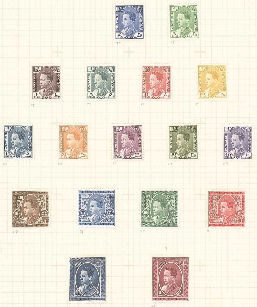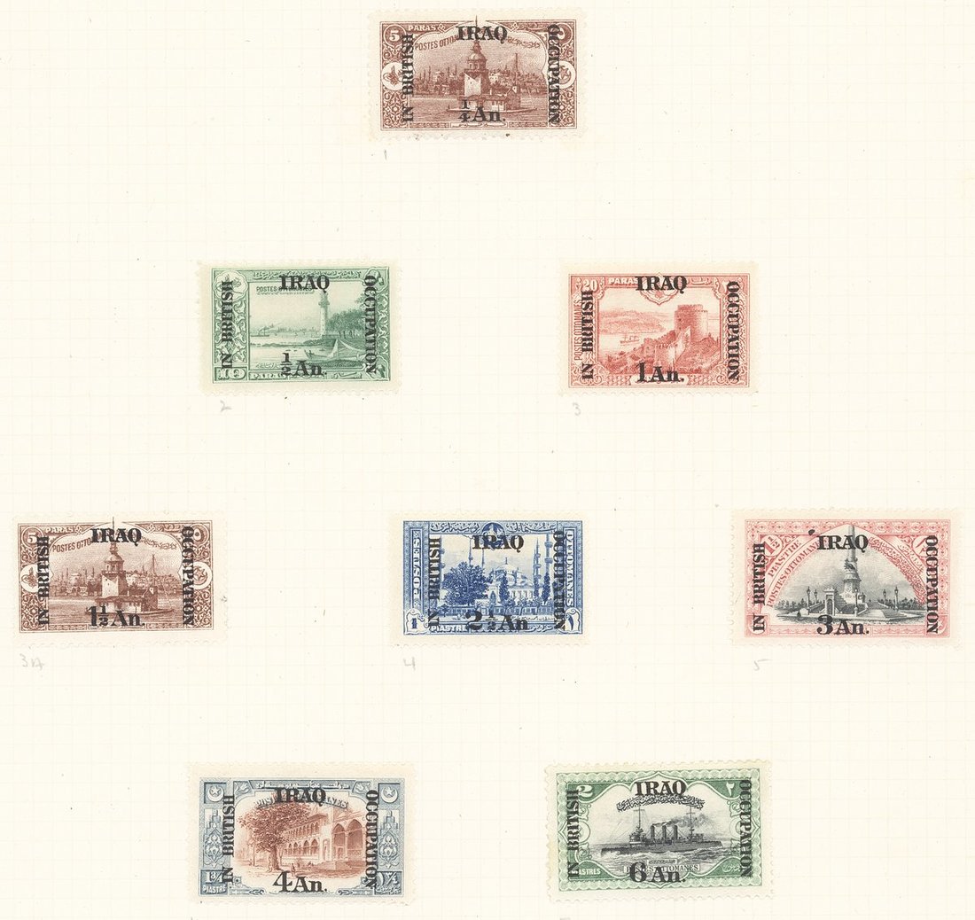 1918-22 mint group hinged to pages including 1918-20 set to 10r. on 100p. with small patches of gum removed from previous hinging, 1932 set to 1d., 1934-38 part set to 1d. missing only 1f., 1932 Official set to 1d. on 25r. with many marginal and attractive and 1919 issues for Mosul to 8a. on 10p. Approx. Cat. £850+
