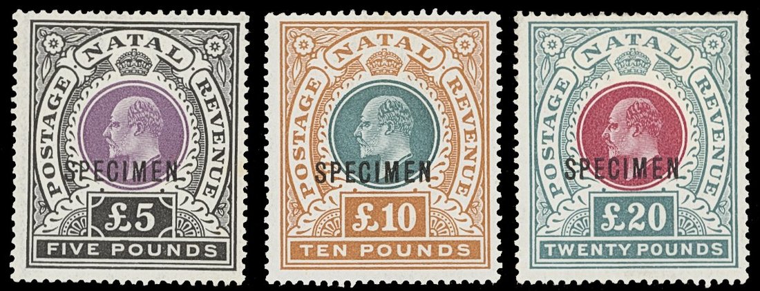 1902 CC £5 mauve and black, £10 green and orange and £20 red and green , all overprinted