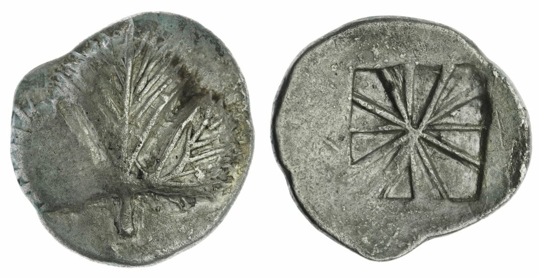 Sicily, Selinus (520-490 BC), AR Didrachm, 8.68g, celery leaf, rev. incuse square divided into 12 raised and sunken triangles (SNG Ashmolean 1886), bright surfaces, a bold very fine