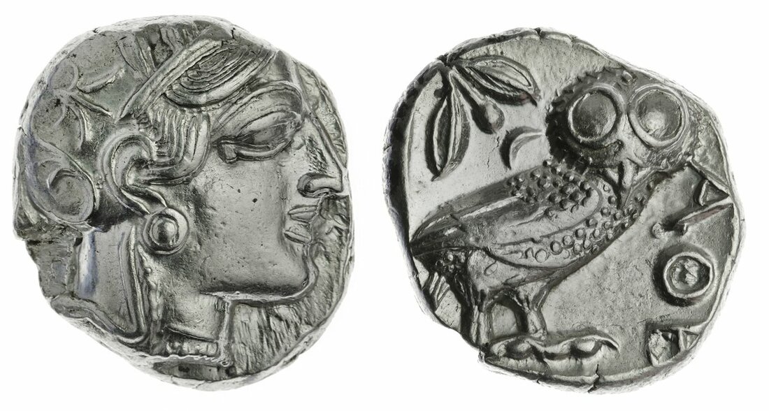 Attica, Athens (454-404 BC), AR Tetradrachm, 17.02g, helmeted head of Athena right, rev. Owl, sprig and crescent moon with AOE all in incuse square (Kroll 8; SNG Copenhagen 31; SNG München 49; HGC 4, 1597), well-centred on an irregular flan, bright and lustrous, a really good very fine