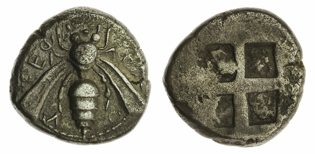 Ionia, Ephesos (c. 450 BC), AR Drachm, 3.18g, bee, rev. quadripartite incuse square (BMC 12-13; SNG Copenhagen 210; SNG Kayhan 140), slightly rough surfaces, otherwise a bolder very fine