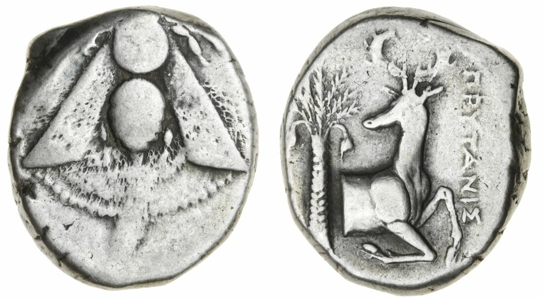Ionia, Ephesus (c. 387-295 BC), AR Tetradrachm, Prytanis, magistrate, 15.07g [232.7gns], 12h, bee with straight wings, rev. forepart of stag, palm tree behind, PRYTANIS in field (BMC 51; Pixodarus Hoard, p. 191), the obverse off-struck, otherwise rubbed, fine