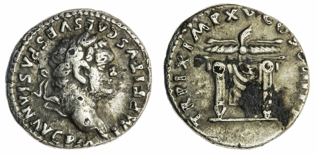 (x) Titus (79-81), Fourree Denarius, Rome, struck AD 80, laureate head right, rev. TR P IX IMP XV COS VIII P P. winged thunderbolt on altar (RIC 23b; Cohen 314), patches of verdigris, a bolder fine