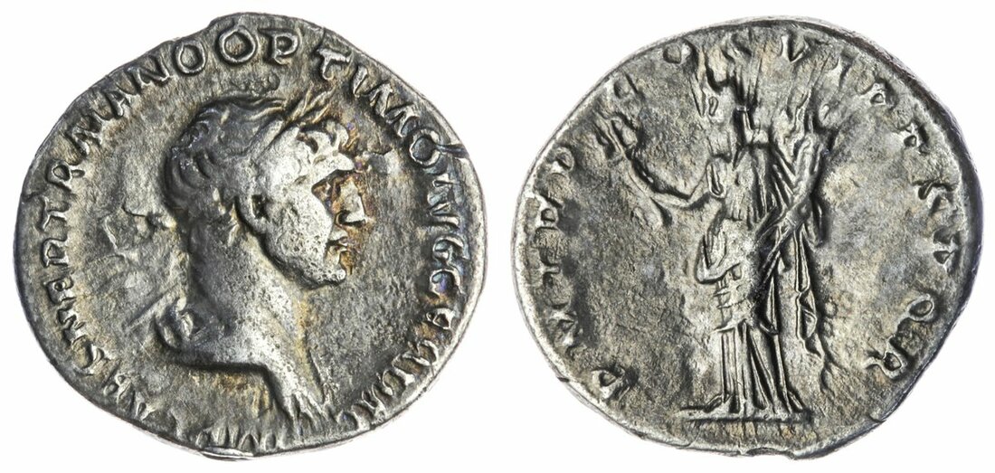 (x) Trajan (98-117), AR Denarius, 7h, Rome, struck AD 114-117, IMP CAES NER TRAIANO OPTIMO AVG GER DAC, laureate and draped bust right, rev. P M TR P COS VI P P SPQR, Felicitas standing left, holding caduceus and cornucopiae (BMCRE 541; RIC 343; Cohen 278; RSC 278), toned, fine