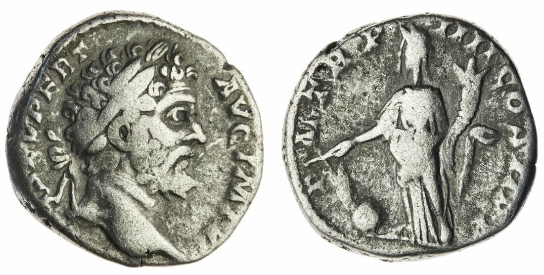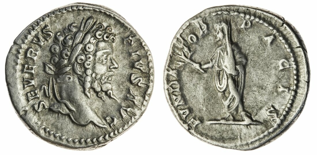 (x) Septimius Severus (193-211), AR Denarii, Rome (2), 12h, struck AD 196, L SEPT SEV PERT AVG IMP VII, laureate head right, rev. P M TR P IIII COS II P P, Fortuna standing left, holding rudder set on globe and cornucopiae (RIC 71A; RSC 423), fine; another, 2h, struck AD 202-210, SEVERVS PIVS AVG, laureate head right, rev. FVNDATOR PACIS, Emperor standing left, veiled, holding branch and roll (RIC 265; BMCRE 330; RSC 205), very fine (2)