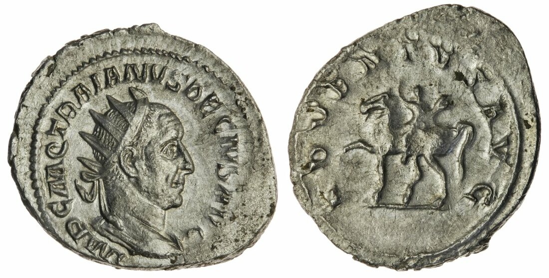 (x) Third Century Silver (1), including, Gordian III (238-244), AR Denarius, AD 240, rev. P M TR P III COS II P P, Apollo seated left (RIC 114); also, Antoninianii (9), Philip II, rev. Philip seated left, holding globe (RIC 2b); and, Trajan Decius (2), rev. ADVENTVS AVG; GENIVS EXERC ILLYRICIANI (RIC IV 16c; RSC IV 49); Trebonianus Gallus, rev. PIETAS AVGG; Herennia Etruscilla, rev. PVDICITIA AVG; Otacilla Severa, rev. IVNO CONSERVAT; also, Volusian, rev. PAX AVGG; lastly, Probus, rev. SOLI INVICTO CM XXIS; and, Diocletian, rev. CONCORDIA MILITVM, XXI in exergue, generally very fine to extremely fine or better, the last with residual silvering (10)