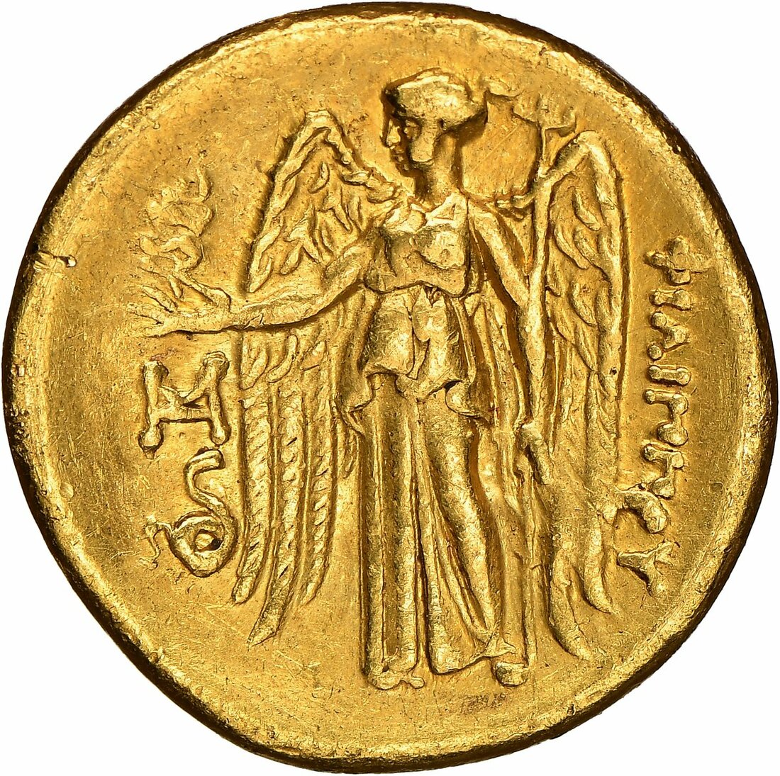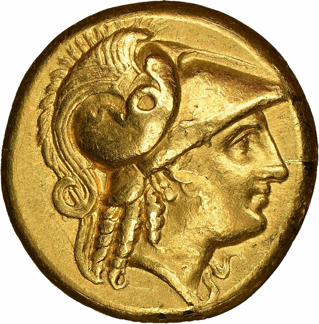 Macedon, Philip III Arrhidaios (323-317 BC), AV Stater, 8.51g, 12h, Abydos, helmeted head of Athena right, rev. Nike standing left, monogram and serpent before (Price P31), edges made round from jewellery, otherwise a bolder very fine