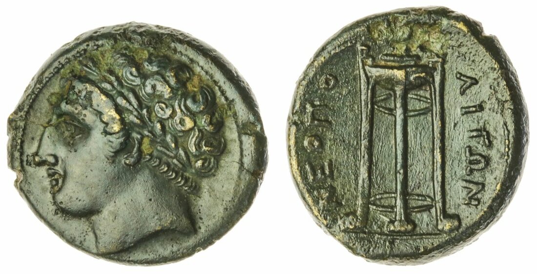 Campania, Neapolis (300-275 BC), Æ 16mm, laureate head of Heracles left, rev. tripod (BMC 199; Sambon 705; HN Italy 583; SNG ANS 507-512), delightfully centred, about extremely fine