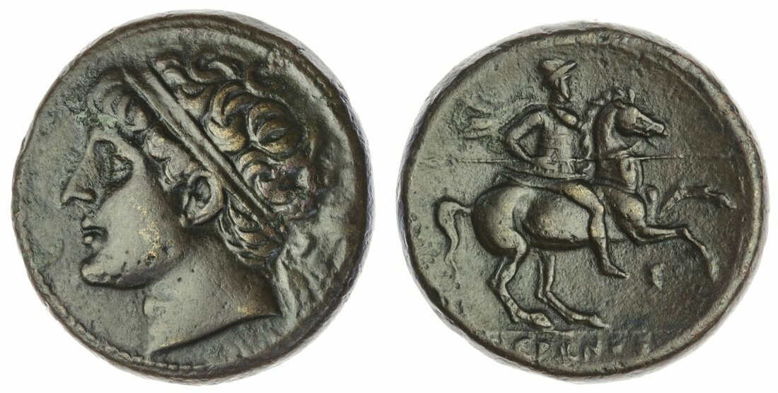 Sicily, Syracuse, Heiron II (275-215 BC), Æ 27mm., diademed head of Heiron left, rev. horseman right, holding spear, E below (SNG Morcom 823; SNG Copenhagen 834), brown patina, very fine