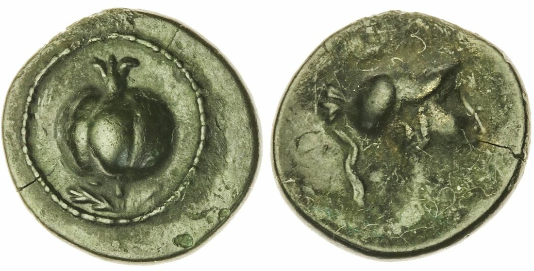 Pamphylia, Side (c. 1st Century BC), Æ 13mm, pomegranate, rev. helmeted head of Athena right (BMC [Lycia], pp. 150, no. 59; Laffaille -; SNG Copenhagen 387; SNG von Aulock 4804), rich dark patina, near extremely fine