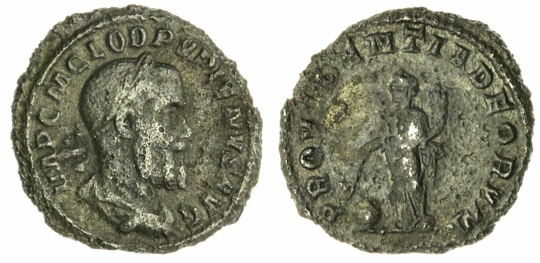 Pupienus (238), Limes Denarius, 12h, Rome, IMP C M CLOD PVPIENVS AVG, laureate and draped bust right, rev. PROVIDENTIA DEORVM, Providentia standing left, holding wand over globe with right hand and cornucopia in left (cf. Leu Numismatik, Auction 1, 25 June 2017, lot 1129; Cohen 33; RIC 7*), light tone, good very fine, and an extremely rare hybrid muled with the reverse of a Balbinus issue