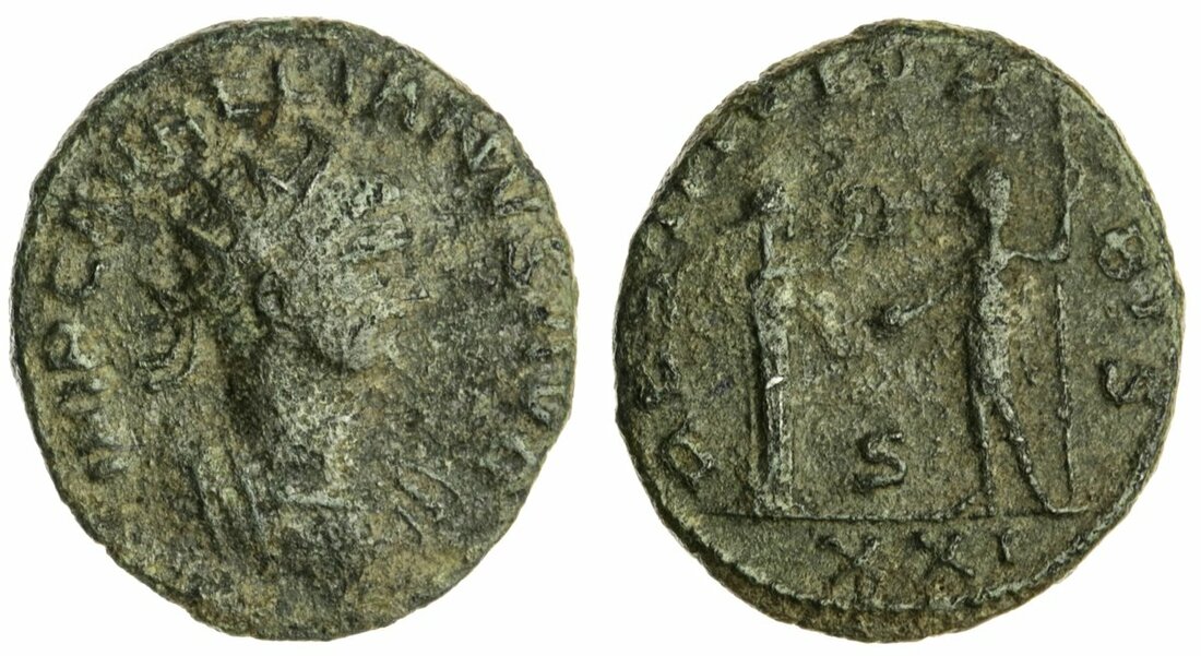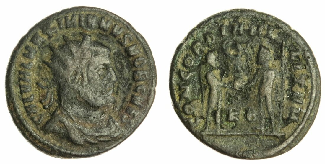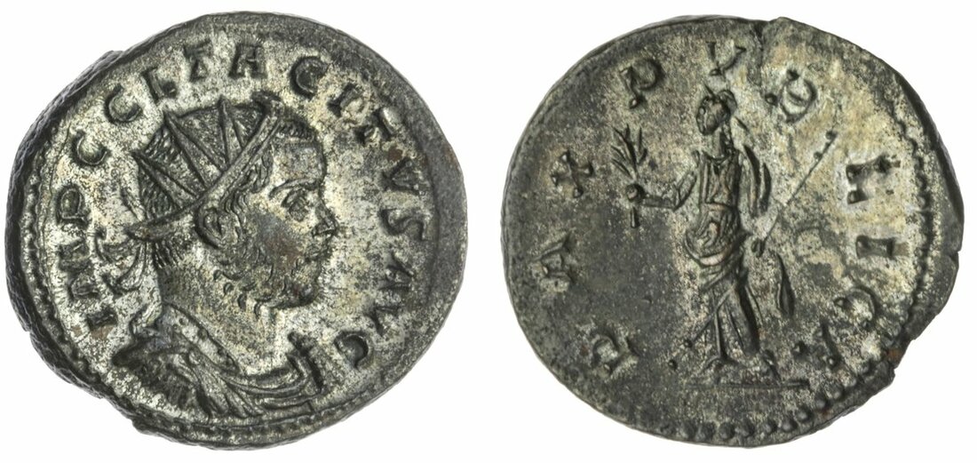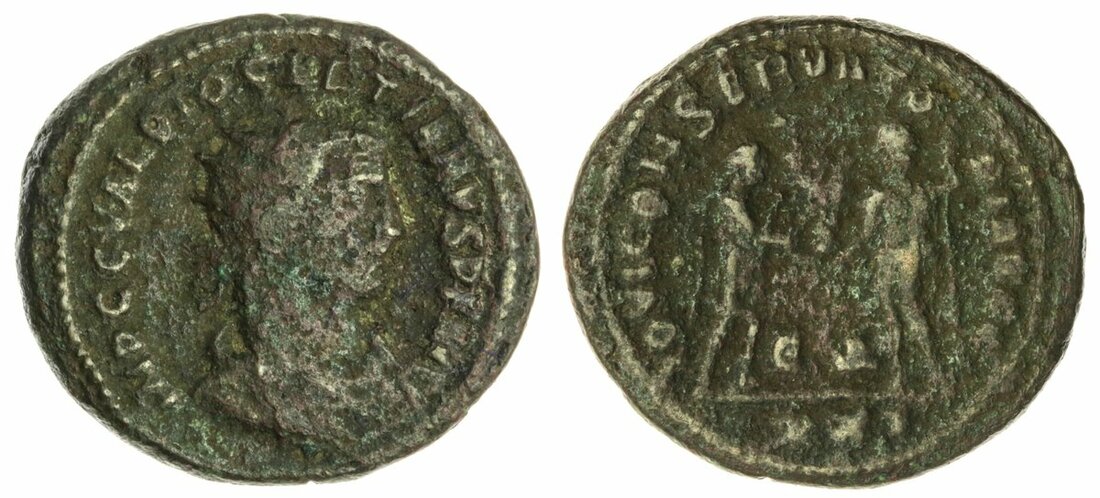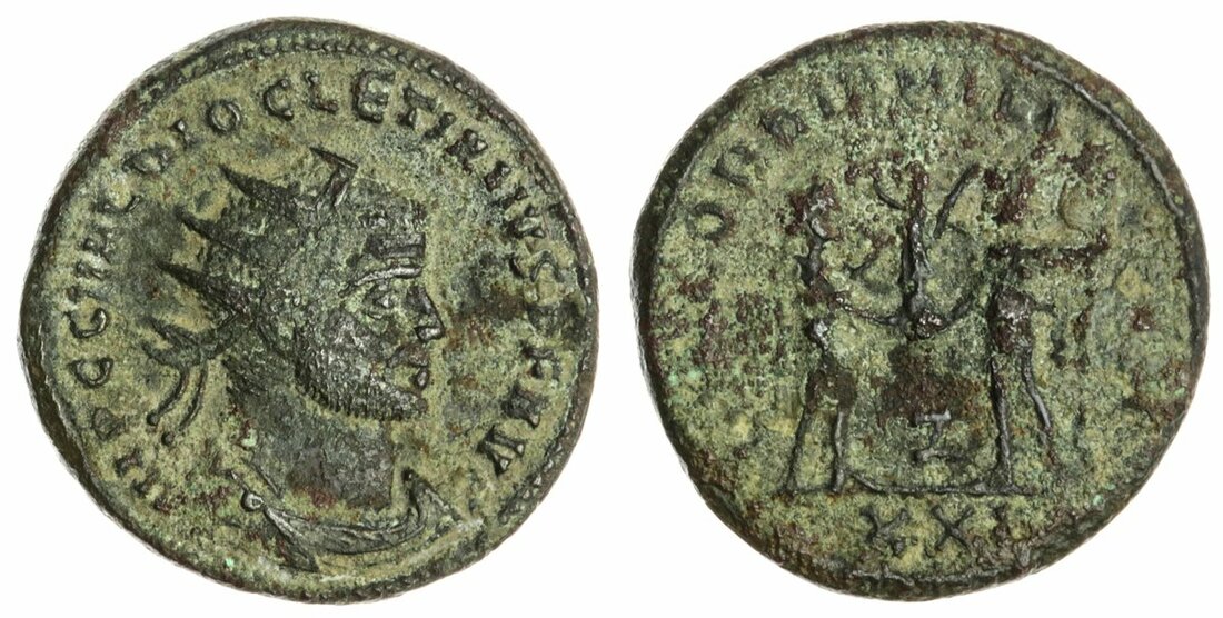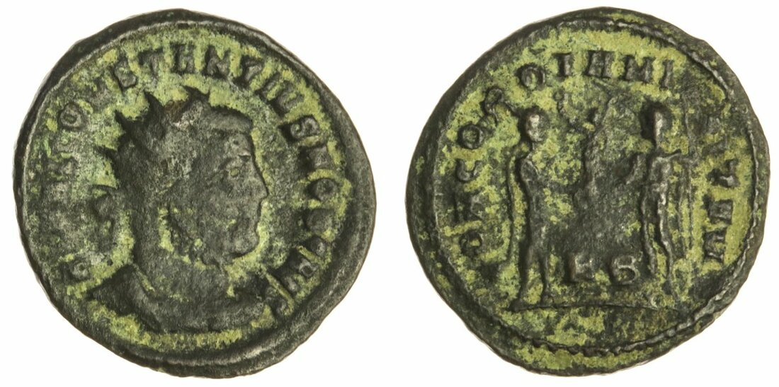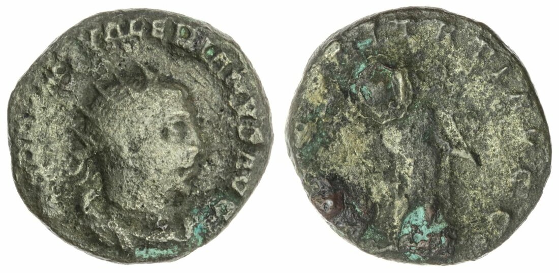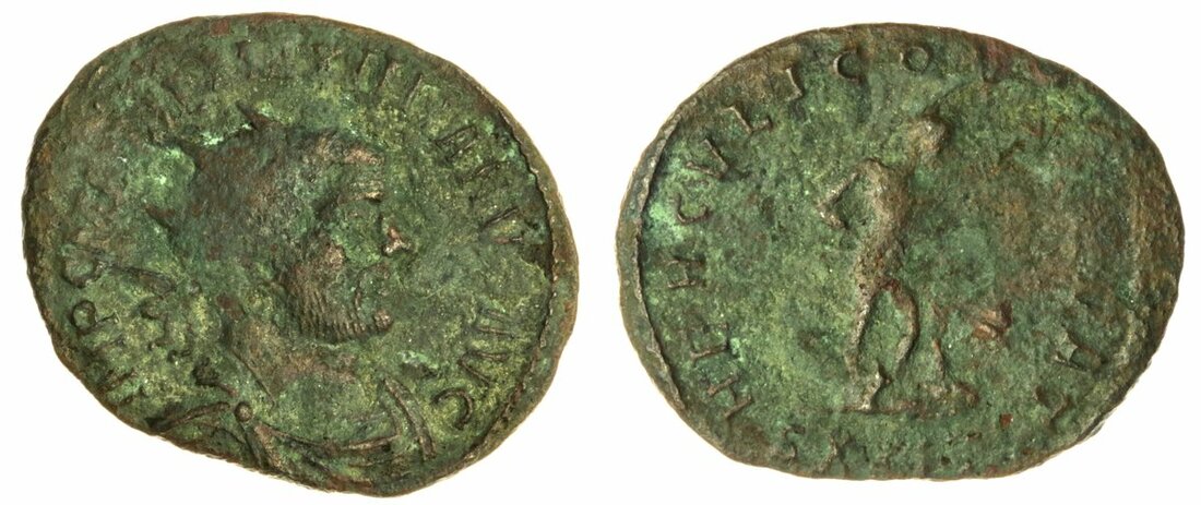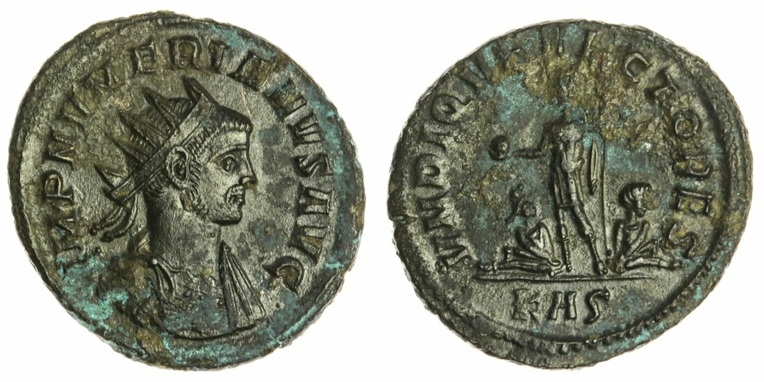 Third Century AE Antoninianii (31), including, Valerian (2); Gallienus; another, Claudius II Gothicus, Quintillus (RIC 33); Aurelian, RESTITVTOR ORBIS (2), one of Cyzicus; Tacitus, rev. PAX PVBLICA (RIC 45); Probus (3), one struck in Antioch; Carinus; Carus; also, Numerian (RIC 243); Diocletian (4); Maximianus Herculeus (5); and Constantius Chlorus (2), generally fine to good very fine, some corroded; additionally, Gallic Empire (3), Postumus, rev. IOVI VICTORI Tetricus I, rev. HILARITAS AVG (RIC 79); and, Victorinus, rev. SALVS AVG (RIC 122), generally very fine; lastly, Britannic Empire (2), Carausius, rev. PAX AVG; lastly, Allectus, PAX AVG, S-P across field (RIC 305), fine to very fine (31)