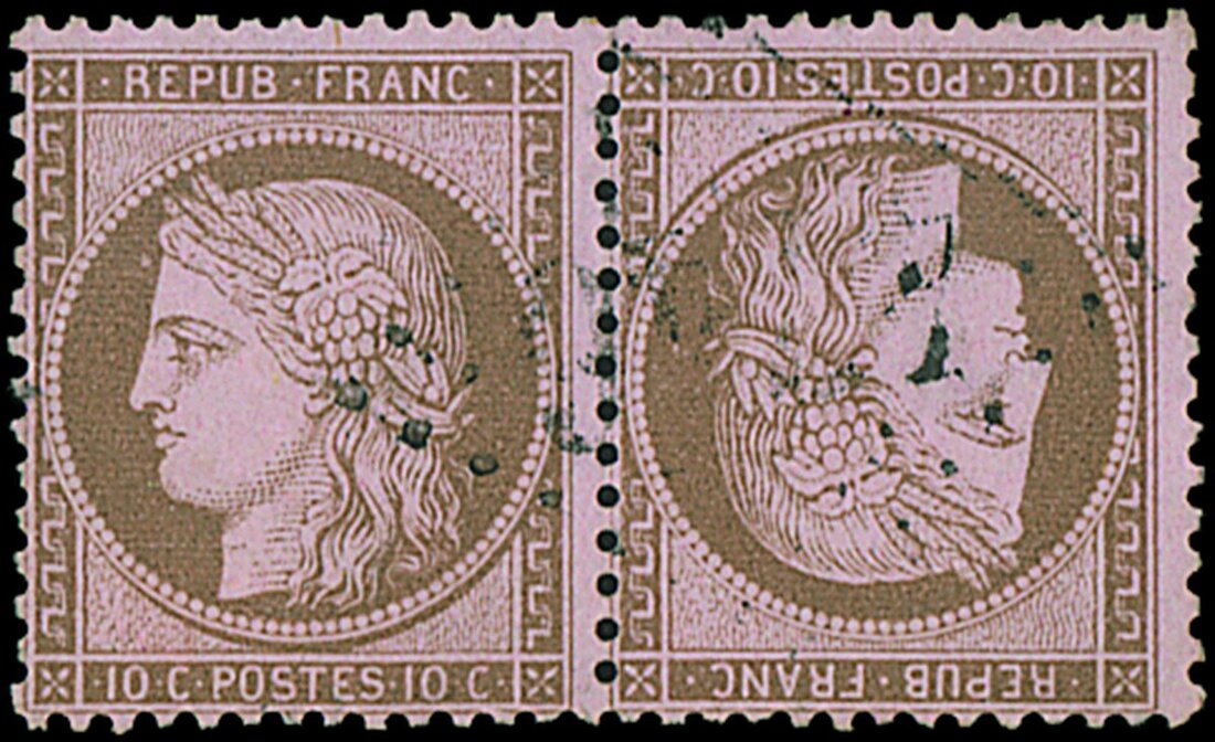 Petits Chiffres 10c. brown on rose, "neck to neck" tête-bêche pair, used, tiny pin hole, otherwise fine and scarce. Behr Certificate (2016), Spink Maury T48, €2,650