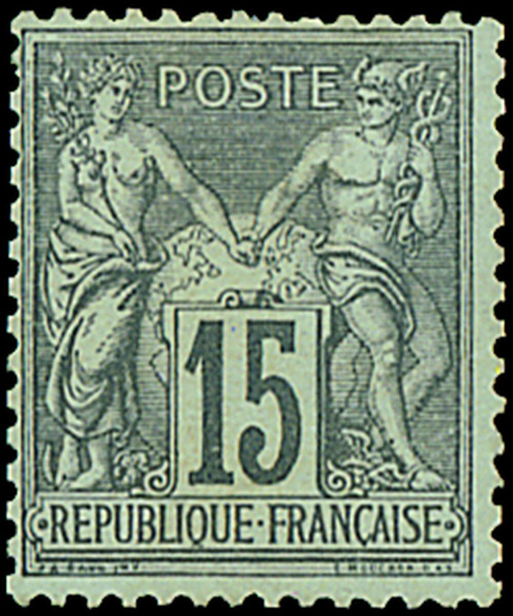 1876-85, Type II, N under U 15c. grey, type II, original gum; fresh and fine. Signed Calves, La Postale Certificate (2016), Spink Maury 77, €600