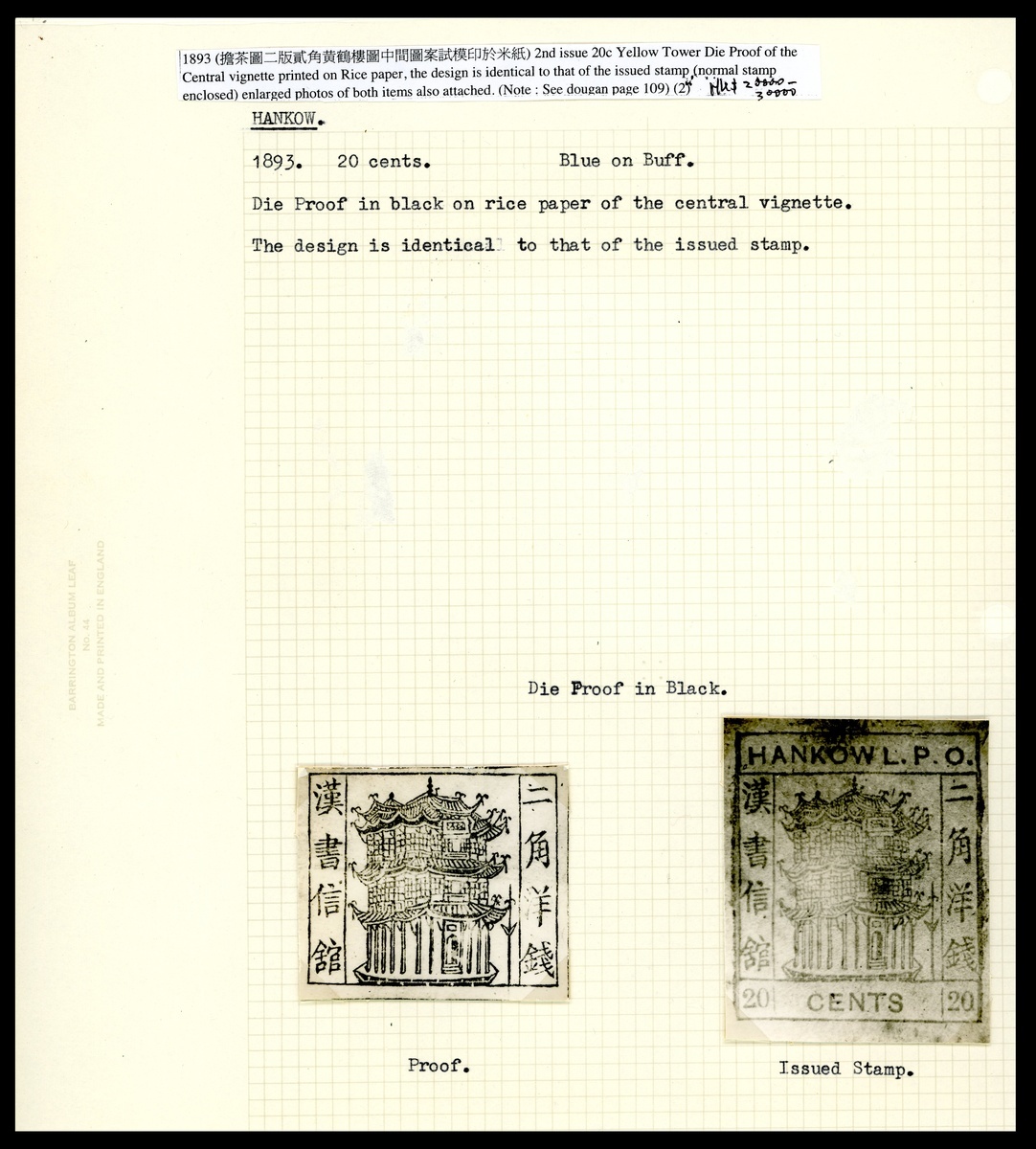 20c. Crane Tower design in horizontal format, and uncleared die proof of the central vignette struck in black on fine white paper; there is some light tone spotting but an important and desirable example of thes rejected format for this value